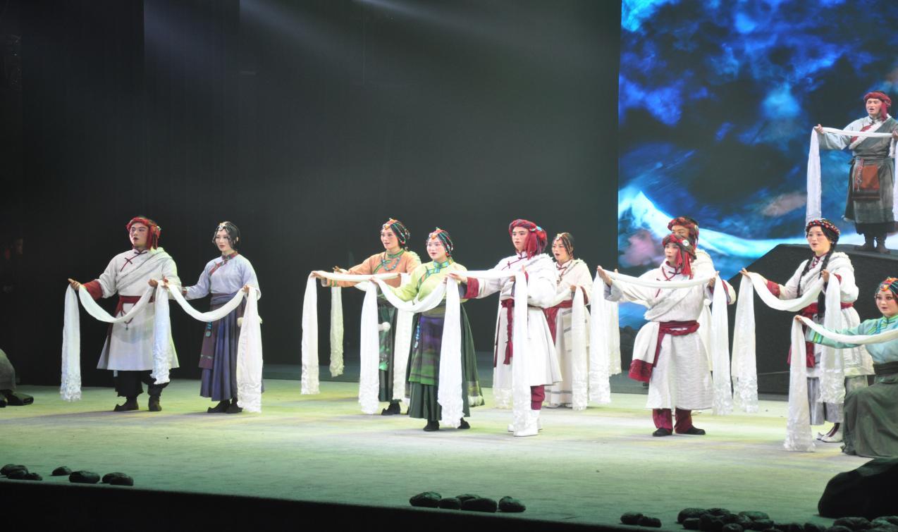 秦腔《红河谷》以雪山女神为背景,演绎了一段西藏儿女的爱恨与忠诚。剧中既有青年男女的纯真爱情、马帮与头人之间的深厚信任,更在英军入侵之际,升华为汉藏同胞放下私情、携手抗战的家国大义。其中最震撼我的场景是丹珠面对敌军劝降时所唱:“站也是死,坐也是死,何不浴血守护高原?”一语道尽不屈脊梁。全剧将小爱融于大爱,令人肃然。秦腔唱腔高亢婉转,演员功底深厚,余韵悠长。舞台呈现亦极富张力:前期圣洁神秘的藏地风光宛若仙境,后期烽烟四起、血色笼罩,汉藏儿女壮烈牺牲,悲壮苍凉。全剧兼具艺术感染力与历史厚重感,给我们深深的震撼。