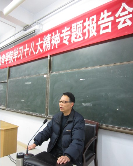 阎树群教授指出,学习十八大精神是目前首要政治任务,强调青年学生学习十八大精神应该深入浅出、入脑入心。阎教授从十八大的主要成就、十八大对党指导思想理论的贡献、十八大对中国特色社会主义理论的贡献及党的建设四个方面引领同学们展开十八大精神的学习,他指出,学习贯彻十八大精神,要大力发扬理论联系实际的学风,只有学以致用,坚持用十八大精神指导实践和学习,同时在实践和学习中不断加深对十八大精神的理解,才能真正把十八大精神落到学习、生活和工作之中。阎教授的宣讲报告字字珠玑,内容精彩,深深吸引了在场的师生。