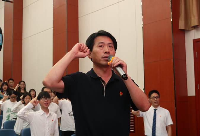 比赛结束后,在核算计分过程中,由第一学生党支部刘锦呈同学为大家进行党史主题演讲。张学龙书记带领全体党员重温入党誓词,将现场气氛推向高潮。