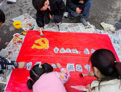 活动现场,同学们手执画笔,共绘长卷华章。笔墨酣畅淋漓,长卷气势磅礴。西法大学子以笔做媒,以画寄情,拓印风雨历程,勾勒宏伟蓝图,一道道色彩,一张张笑脸,描绘了百年来的峥嵘岁月,注入了新时代青年源源不断的青春活力。