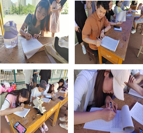 “1、2、3、4、5、6、7、8、9、10……”你以为这只是简单的书写数字?非也非也,看似简单地写数字小游戏却蕴含大大的学问,从1写到500,要求一笔写成,不能出错,不能涂改。本活动极大地考验同学们的耐心、专注力以及抗压能力,正所谓“目不能两视而明,耳不能两听而聪”。虽然烈日炎炎,但活动中的同学们都静如处子,心无旁骛,专心致志地投入在写数字游戏之中,修炼自己的耐性,享受游戏的乐趣。