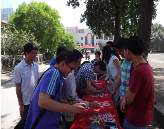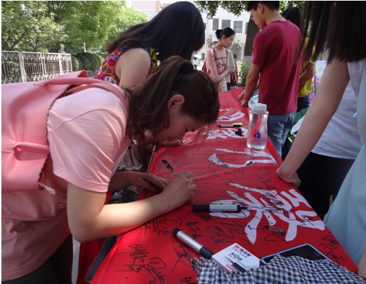 本次活动属于法律硕士教育学院心理健康月系列活动之一,通过开展以为母亲送祝福活动,加深同学们对于“感恩”的体会与感悟。10点40分,生活部的同学们开始了紧张忙碌的活动准备工作,11点,签字送祝福活动正式开始。