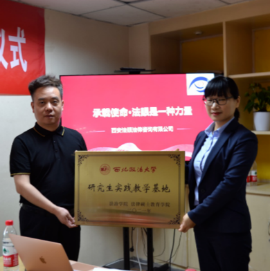 2021年9月17日上午,赌场 法律硕士教育学院与西安法眼法律咨询有限公司签署研究生实践教学基地共建协议暨基地授牌仪式在西安法眼法律咨询有限公司举行。院长陈玺、副院长淡新昌赴西安法眼法律咨询有限公司签约、授牌,辅导员马军强、实训生袁如欣、张栋良参加了签约仪式。