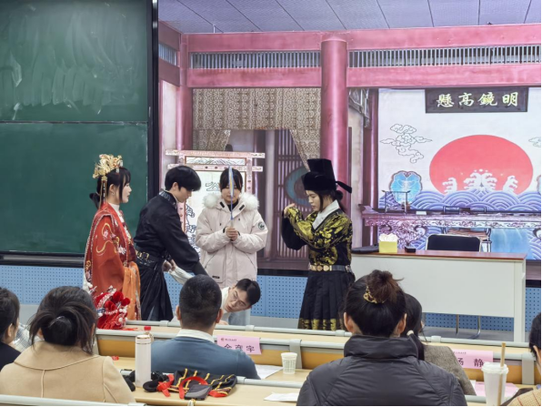 展演结束后,杨静副教授对活动进行专业点评。她高度肯定了各参赛队伍的用心筹备与创新精神,指出各队作品既紧扣法律典籍的核心精神,又融入了新时代青年的独特观察与诠释,精准契合 “以演促读、以文化人” 的活动初衷。同时,她鼓励同学们继续深耕经典,在实践中感悟法治温度,在传承中彰显青年担当。