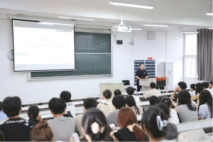 陈玺院长以《惟明之道:中国传统法律观念的成语表达》为题,为新生讲授“新生第一课”。他向全体同学介绍了以“明”为核心的法律成语是中国古代法治理念的具象载体,蕴含着公平、公正等深刻法理内涵。希望同学们在推进依法治国时,需对其内涵创造性转化、创新性发展,挖掘其中大明法度、司法惟明、执法严明的法治理念,深刻领会全面依法治国的精神实质,为未来投身法治实践奠定思想基础。