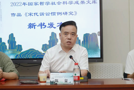 发布会上,陈玺向与会专家、媒体分享了该书的创作历程,该书经过六年的摸索,几经波折终于面世,分绪论、总论、各论、结论四部分,共设16章,具有选题较为新颖、切入视角宏观与收集资料全面等创新之处。该书通过系统考察唐宋时期诉讼规则继受与变革的时代背景、历史轨迹与后世影响,论述了宋代诉讼惯例运行的法理基础、构造逻辑与功能定位,最终查明我国固有诉讼规则之发展规律、适用状态、演进模式、转型格局。他总结道,中华优秀传统法律文化在两宋之际展现出因时制宜、持续发展、日臻完善的时代特色,这座丰富的法律文化矿藏依然值得深入挖掘。