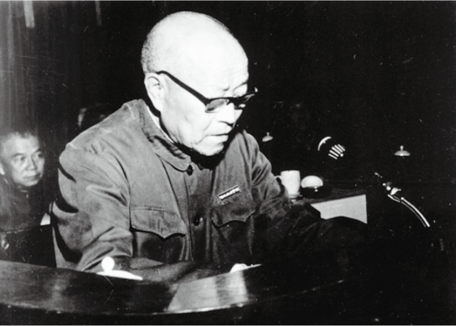 ▲学校复校后第一任党委书记兼院长王云在79级开学典礼上讲话
