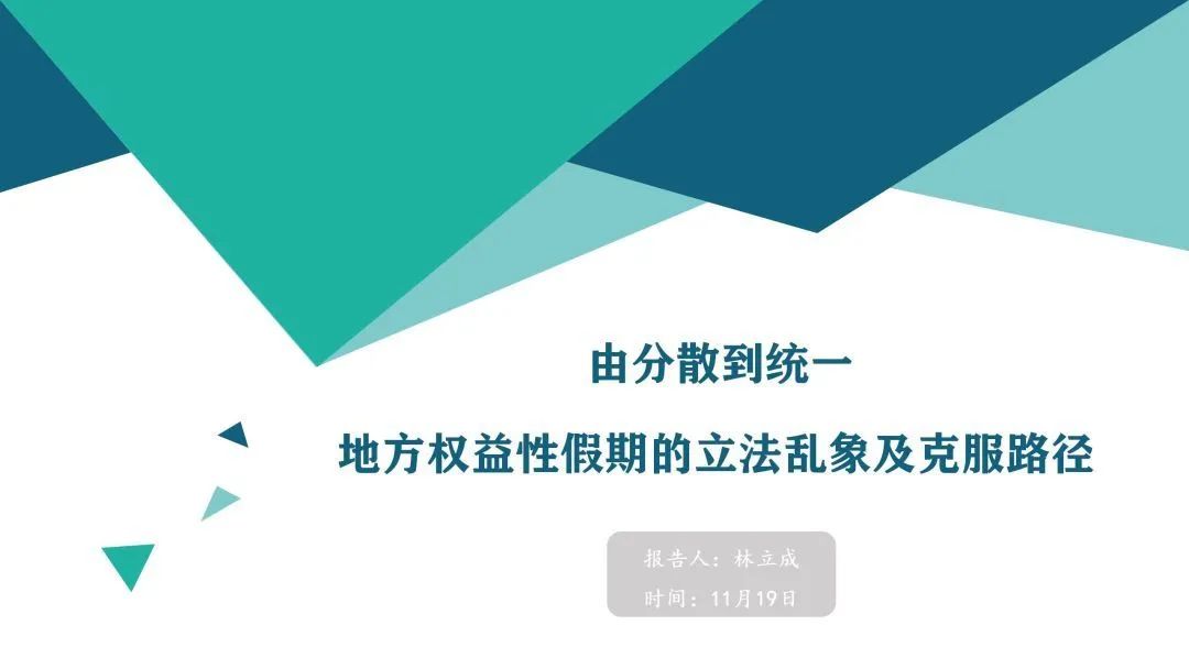 法治讲堂系列讲座第十七期在线上举行。滁州学院马克思主义学院林立成博士做题为《由分散到统一:地方权益性假期的立法乱象及克服路径》讲座。讲座由赌场