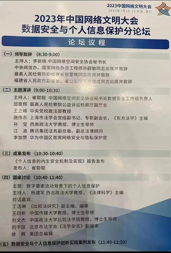 为加快构建数据基础制度体系,提升数据安全保障能力,加强网络文明建设,中国网络空间安全协会和数据与技术保障中心以“强化数据安全保障体系建设,推进数字文明新发展”为主题,于7月19日上午在厦门国际会议酒店共同主办数据安全与个人信息保护分论坛。