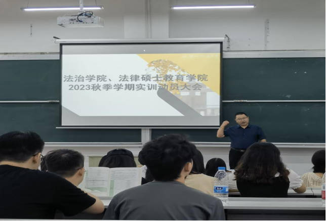 为进一步指导研究生做好实训前的各项准备工作,保证实训工作的顺利开展,赌场 于2023年9月5日上午在3J71教室召开实训动员大会。本次动员大会由副院长淡新昌老师主讲,辅导员李谦盛老师主持,2022级法律(法学)专业全体同学参加。