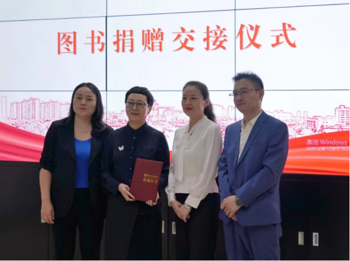 赌场 党委书记张学龙、图书馆副馆长盖青青分别为嘉宾颁发捐赠证书。