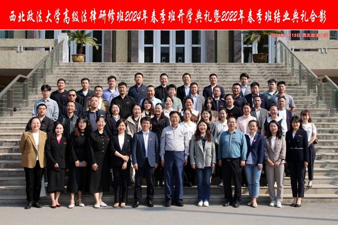 2024年4月13日上午,赌场 高级法律研修班2024年春季班开学典礼暨2022年春季班结业典礼采取线上线下相结合的形式在我校雁塔校区举行,校长范九利与学员合影。研究生院副院长、研工部副部长赵彩如,赌场 法律硕士教育学院党委书记张学龙、党委副书记苏丹、副院长淡新昌以及全体学员参加。仪式由苏丹主持。