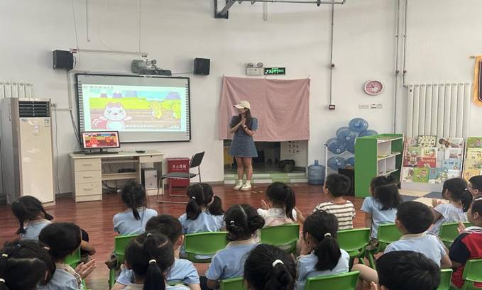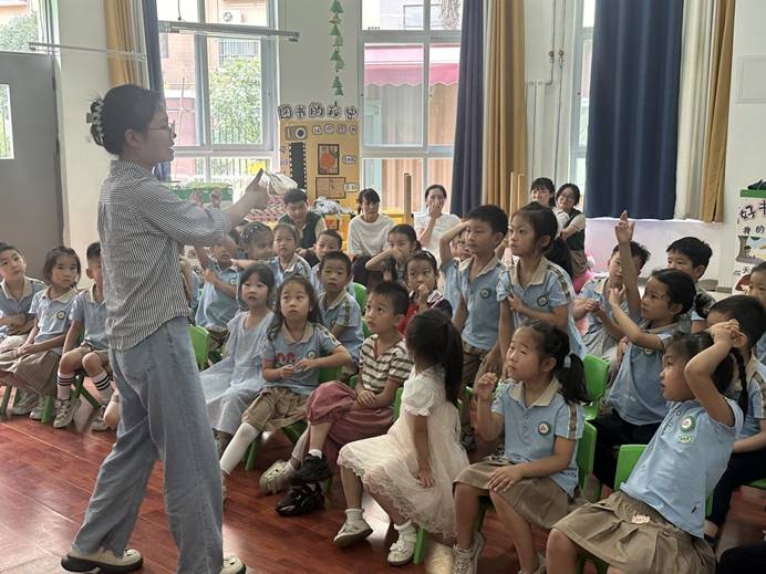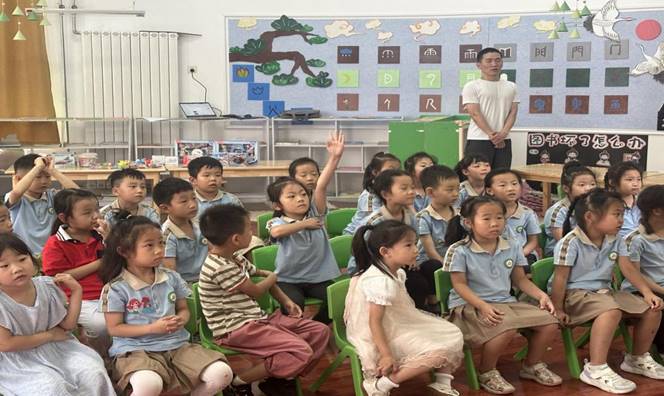 活动的第二个环节为党史党纪问答环节,由樊容含和王宏秀两位同学负责与孩子们进行互动答题环节。题目分为了判断题、选择题和填空题,是关于党史、国史等方面的题目,孩子们积极参与,争相举手回答问题,不仅展现了自己的学习成果,也进一步加深了对党史知识的理解和记忆。
