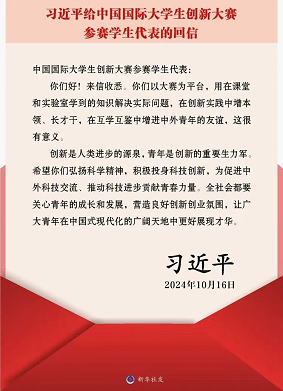 会议最后,学生骨干们围绕习近平总书记的回信精神展开了热烈讨论。大家一致认为,总书记的回信不仅是对中国国际大学生创新大赛参赛学生的巨大鼓舞,更是对全国青年学生的殷切期望和嘱托。大家纷纷表示,要将总书记的回信精神内化于心、外化于行,通过组织专题学习小组、开展实践活动等形式,深入学习法律知识,积极参与社会实践,不断提高自身的专业素养和创新能力,努力成为具备创新精神和实践能力的法治人才。
