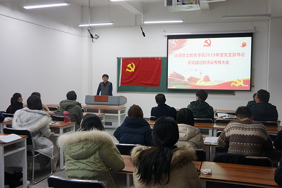 为深入学习贯彻习近平新时代中国特色社会主义思想和党的十九大精神,进一步推动全面从严治党向基层延伸,切实提高党建工作质量,按照学校《关于开展2019年度党支部书记抓党建工作述职评议考核的通知》要求,法律硕士教育学院党委于12月31日下午,在雁塔校区三号教学楼3307教室召开2019年度学院党支部书记抓党建工作述职评议考核大会。全院全体教师、各党支部书记、党员群众代表共30余人参加会议。