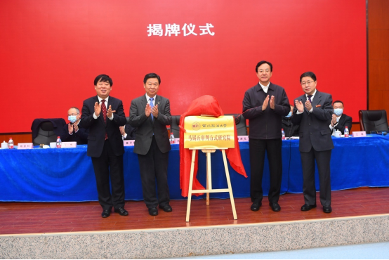 徐显明、张述元、孙国华、杨宗科一起为马锡五审判方式研究院揭牌。