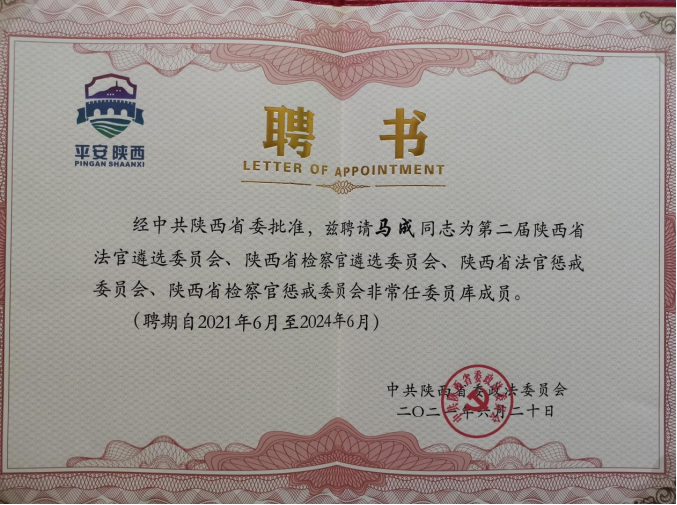 据悉,赌场 马成教授入选第二届陕西省法官遴选委员会、陕西省检察官遴选委员会、陕西省法官惩戒委员会、陕西省检察官惩戒委员会非常任委员库成员。