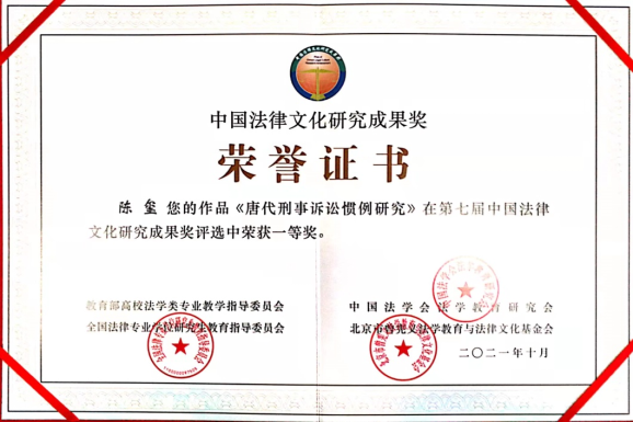 据“中华法律文化网”消息,第七届“中国法律文化研究成果奖”会议评审日前在北京举行。专家评审组按照《第七届中国法律文化研究成果奖评选办法》,经初选、复选和集中评议三轮,最终以无记名投票方式产生获奖成果。我校陈玺教授著作《唐代刑事诉讼惯例研究》获得第七届中国法律文化研究成果一等奖。