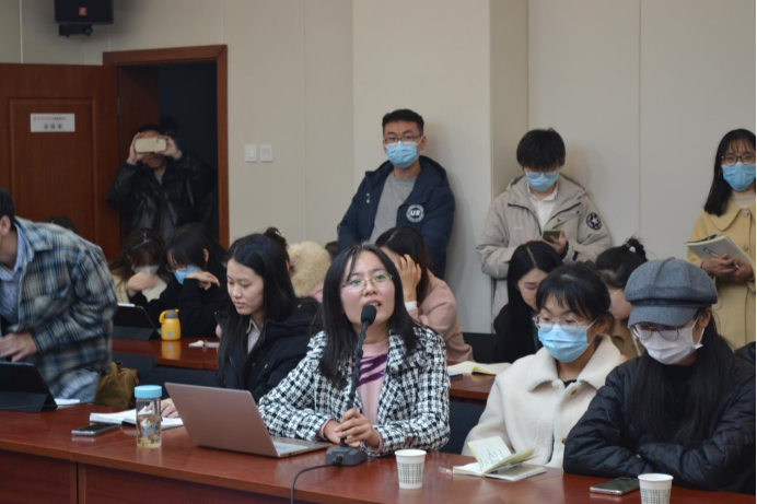 在交流环节,民事诉讼法学科教师蒋丽华就“民事诉讼法与实体法交叉研究问题“与沈丽飞副主编提问交流,现场研究生就论文写作中的问题向沈丽飞副主编提问请教,沈丽飞副主编结合自身独到经验详细解答。