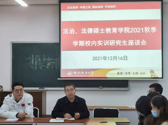 按照研究生院实务训练中期检查工作安排,进一步了解学生校内实务训练情况, 2021年12月16日中午,赌场 副院长淡新昌老师与辅导员马军强老师在雁塔校区第三教学楼3203教室与在校内(北校区)实务训练的约30余名研究生召开了座谈会,详细了解大家的实训情况,并进行了互动问答。2020级法学理论、法律史专业,2020级法律硕士(法学)专业研究生参加了座谈会。座谈会由马军强老师主持。