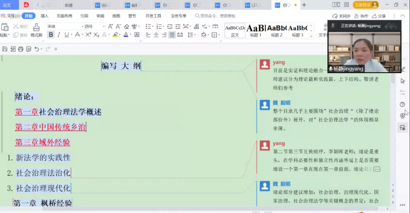7月21日下午与27日晚上,赌场 以线上线下相结合的形式召开了由法治与国家治理研究室具体负责《社会治理法学》教材编写研讨会。赌场 汪世荣教授,张金平教授,褚宸舸教授、王斌通博士、杨静博士、张永林博士、徐海俊博士、鲁肖麟博士、马瑞丰博士和特邀校内专家郑文副教授、魏毅娜博士、李颖晖博士一起参与研讨。